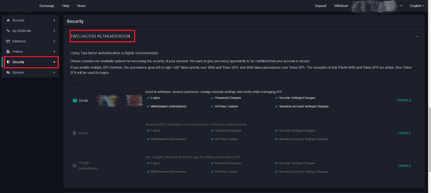 3. Click Security, and you can see Two-Factor Authentication.