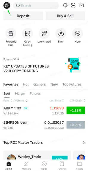 1. Open the BitVez App and tap the icon at the top left of the homepage.